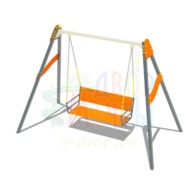 Вашему вниманию предлагаются качели, которые мы называем "семейные". Удобная широкая скамья на жестком подвесе, есть подлокотники и широкая спинка. Эти качели Вы можете установить у себя в саду, их можно поставить и в комплекс детской площадки. Можно сочетать каруселями, паровозиками и машинками.